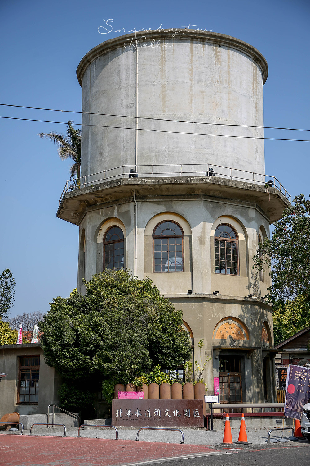 來到北港,朝天宮往往是遊客必訪之地,廟前參道在假日總是人潮洶湧、鑼鼓喧天。而在參道尾端附近的水道頭文化園區,卻自有一份截然不同的靜謐氛圍。園區中最醒目的建築,莫過於俗稱「儲水塔」的十角形水塔,每一面皆設有拱形窗戶,外觀線條簡潔而不失典雅,成為園區最具特色的地標。