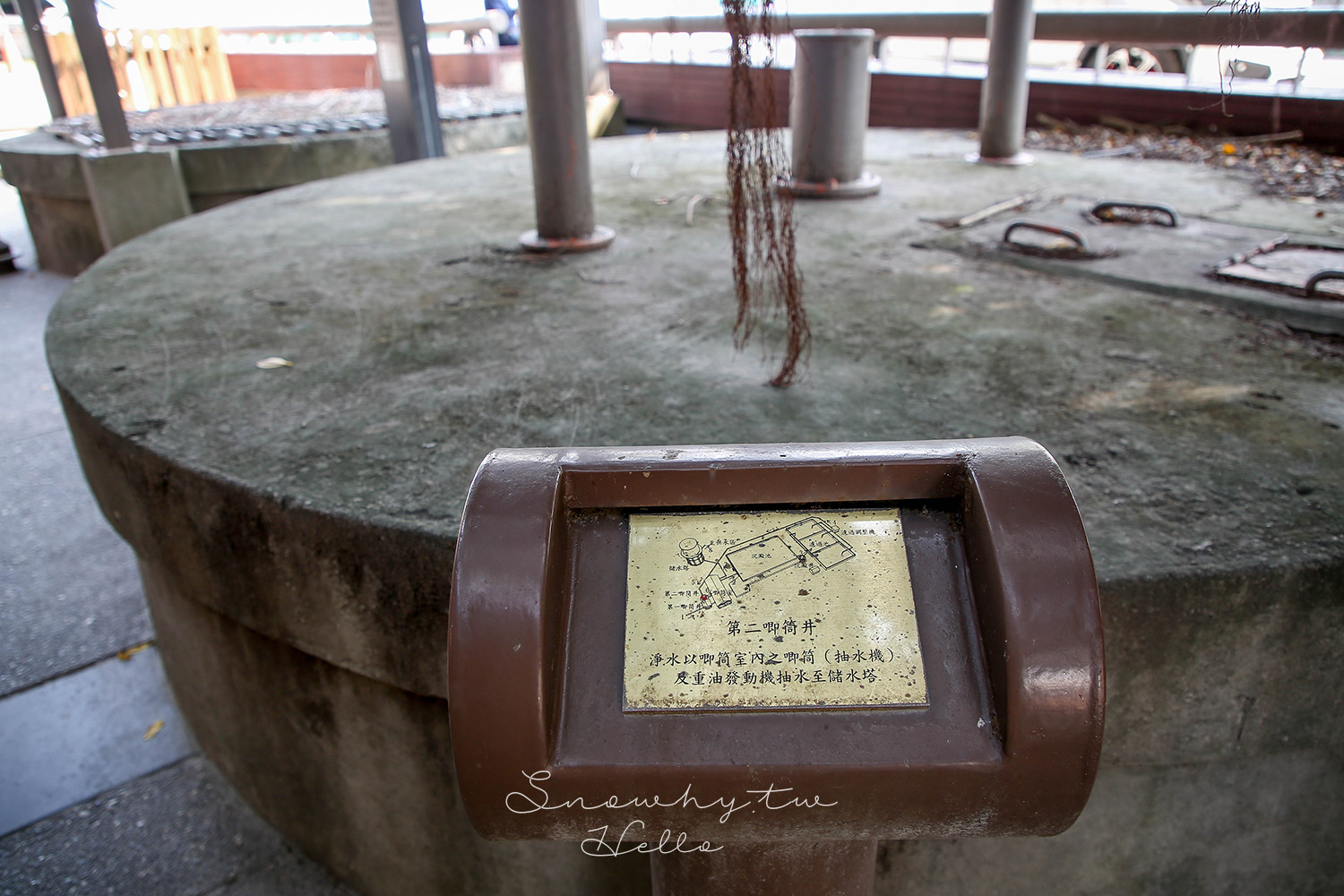 抽水機房第二唧筒井,負責從淨化後的清水抽水,送到貯水塔,供應鎮民使用。