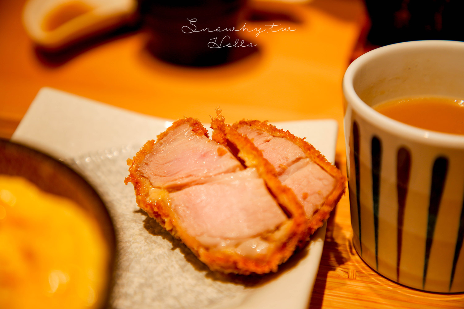 極厚切炸豬排是店員推薦,每日限量,使用低溫舒肥方式料理,肉質軟嫩又有肉汁,適合孩子。待餐點上桌後,我著實嚇了一跳,這碗炸豬排外觀實在樸素,但炸豬排真的很厚實,吃兩塊不用配飯就很飽,是真正的大口吃肉!好慶幸剛剛沒有加點半份的炸霜降紐約客。重點是孩子也吃的很開心。