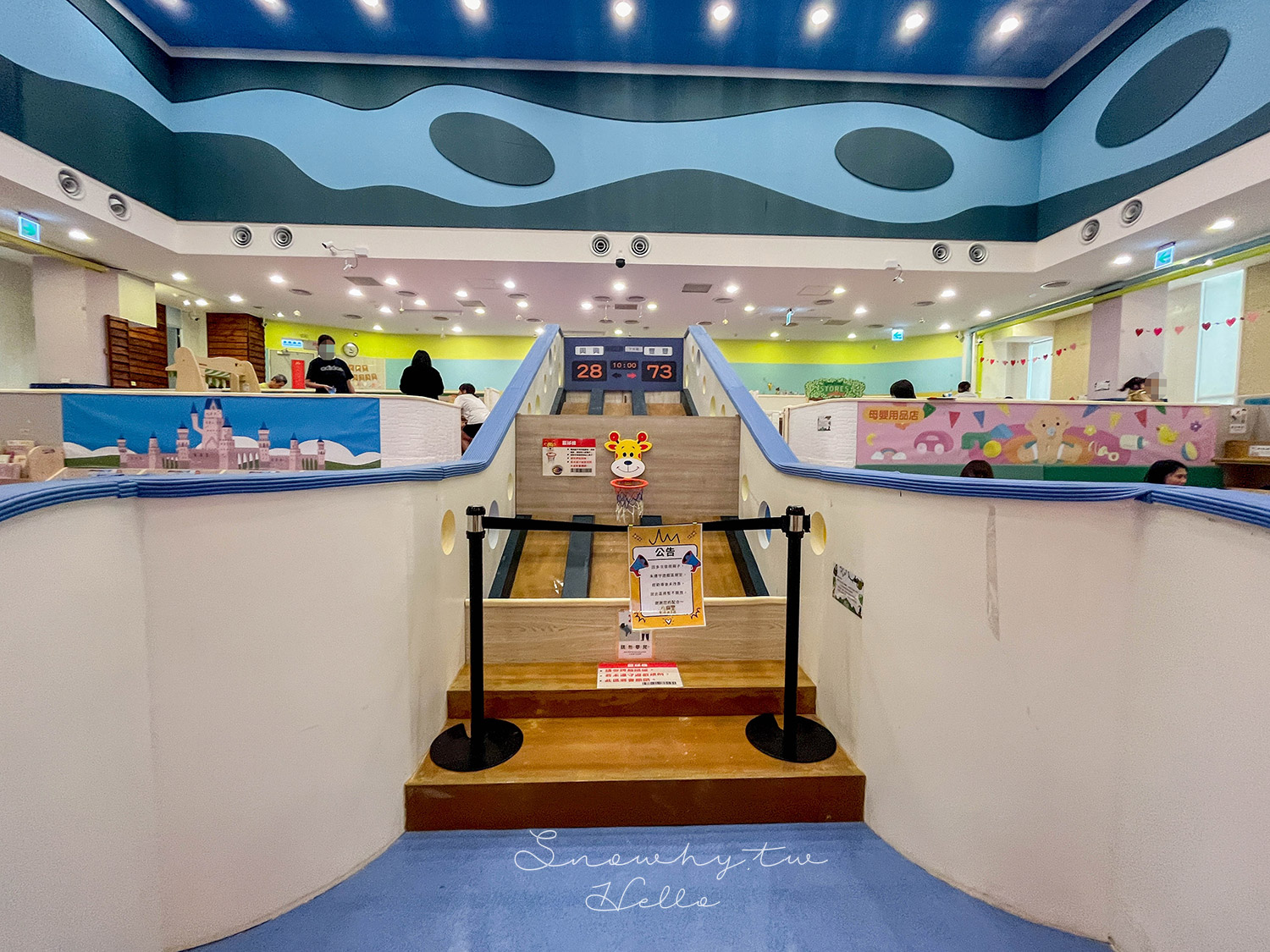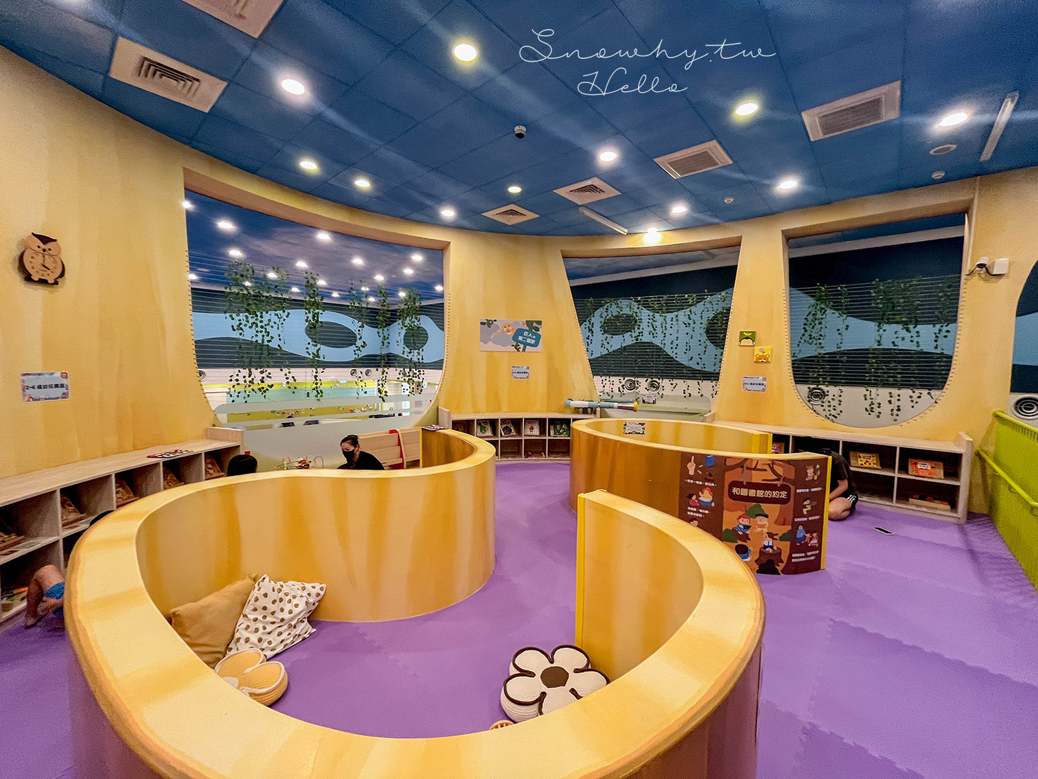 八德興豐親子館位在桃園八德興豐社福館3樓,我跑過的親子館大部份都是寬敞的空間,以櫃子或是牆面、房間做區分,像這種森林大樹屋還是頭一回看見,遊戲區也有常見的益智遊戲區、傢傢酒裝辦區、美勞區、寶寶區、攀爬區以及樹屋二樓的閱讀區,主要以階梯式分區,正中央有個大舞台,中間走道則規劃為投籃區,但目前封閉不開放使用,感覺有點浪費空間。
