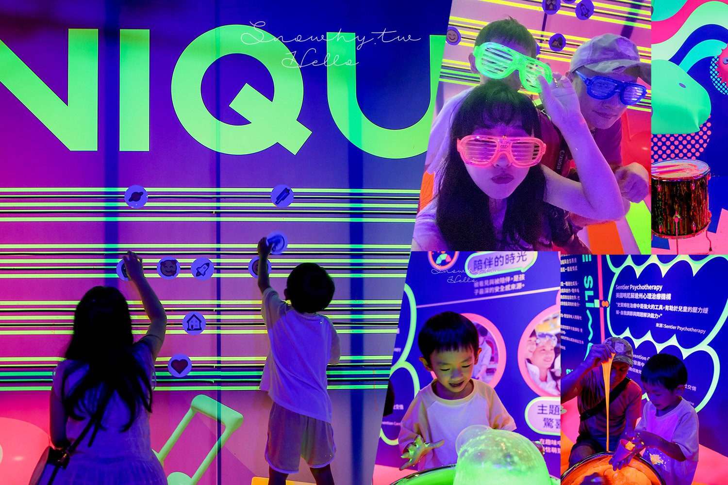 7月中旬帶天天去科教館參加史萊姆實驗室辦的夜光派對,我想今年暑假最夯的親子展覽莫過於小小建築師X史萊姆實驗室夜光派對,上網訂了票後隔天就出發!其實平常幾乎沒有讓天天玩史萊姆,頂多就是去上了一堂史萊姆實驗室的課程。但這次的夜光派對是天天很久沒玩的史萊姆以及融合夜光特效!當然不想錯過~ 而展覽以沉浸式體驗為核心設計,現在許多展覽都講求沉浸式!共有五大夜光派對區,夜光觸感實驗室、泡泡風暴挑戰區、光能節奏實驗艙、光牆音符區與光球孵化艙。 但老實說展場很小,大人和小孩非常多,沒有工作人員指引現場亂糟糟,一進門不知道從何玩起,只好自己佔了位置自己開玩。 其實我和老公都沒想到有這一天(甚至好幾回),買了票親子展覽的親子套票,和一堆爸爸媽媽小孩排隊入場,鬧哄哄、哇啦啦,小朋友尖叫,小朋友大笑,雖然好煩好吵但又好可愛!小朋友就是這樣讓人又愛又恨。總之,天天依舊活出自己,不受環境影響,玩的很開心,只要兒子開心就好,爸爸請假也是值得的! 以下短篇紀錄史萊姆實驗室夜光派對體驗。